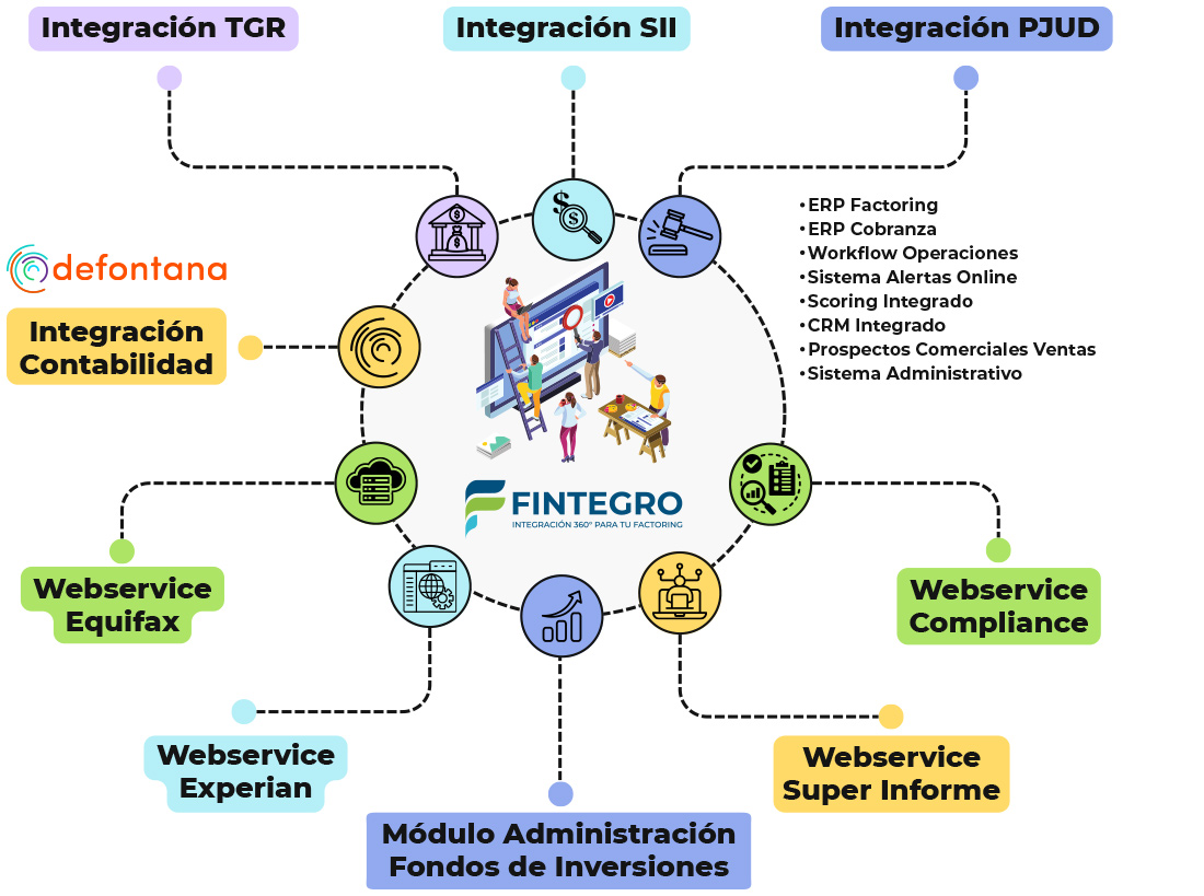 - Tendrás todas las áreas de tu Factoring conectadas en una sola plataforma.